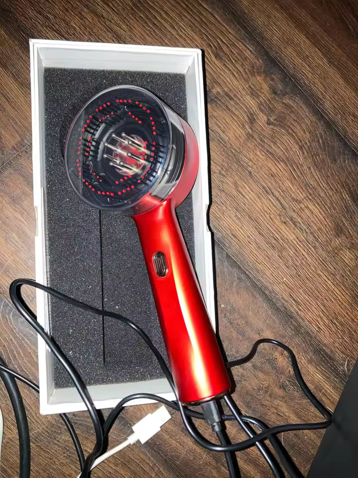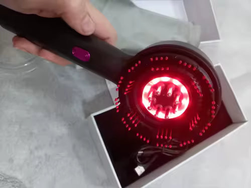 The comb uses 630nm red light therapy, a widely used and safe wavelength that helps stimulate hair roots, improve scalp circulation, and support healthier-looking hair. The rounded massage teeth ensure the light is delivered gently without irritating the scalp.